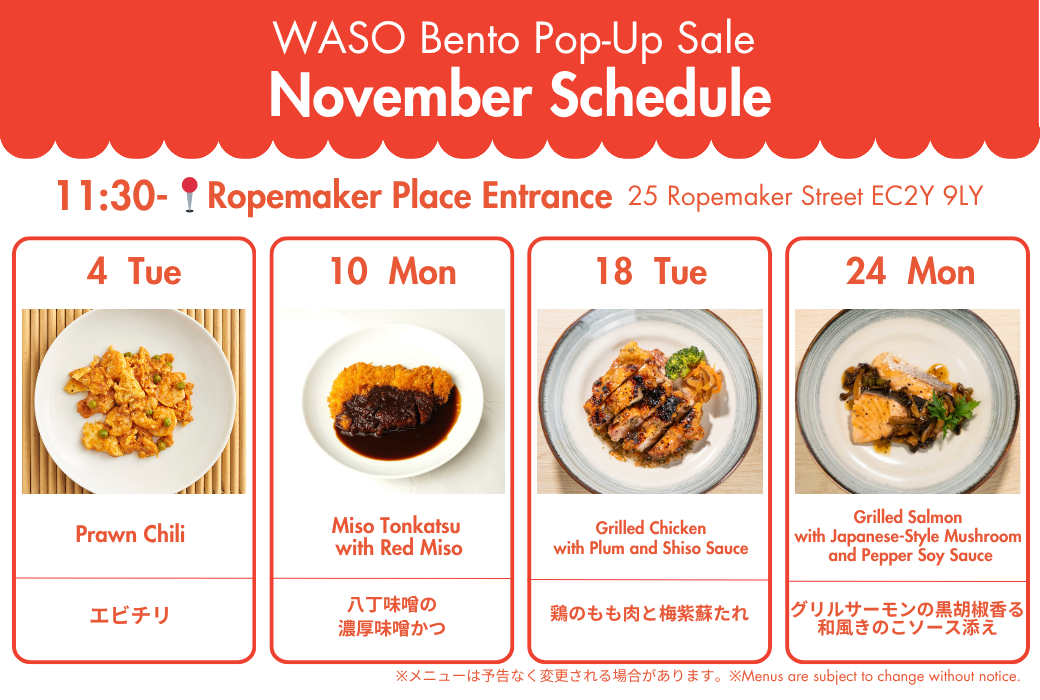 Don't miss our bento pop-up near Moorgate Station on 4th Nov📣 11:30~Ropemaker Place Entrance